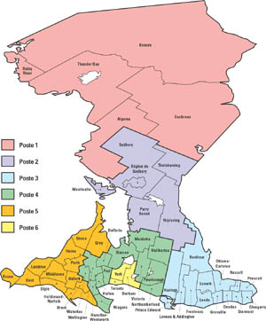 - ou dans toute région du Québec non mentionnée au poste du Nord-Ouest de l'Ontario.