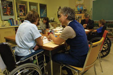 Parmi ses élèves, elle compte un jeune de 17 ans qui suit un traitement de chimiothérapie et une anorexique de 10e année tenue de chanter à haute voix aux toilettes pour que son enseignante sache qu’elle n’est pas en train de vomir. La classe de Lucie est installée dans un hôpital pour enfants malades. L’école dans cet environnement est plus qu’un lieu d’éducation — c’est un havre dans un milieu dominé par les grandes tensions engendrées par les drames et le pathétisme au quotidien. «Oui, c’est un tableau poignant qui vous fait monter les larmes aux yeux», déclare Lucie, née à Ottawa et qui considère que son action auprès des élèves malades en est une «de promotion et de normalisation.» À 7 h 45, Lucie, mariée à André, enseignant, laisse leur maison à Orléans, en banlieue d’Ottawa, pour conduire Olivier, leur fils de 18 ans, et deux de ses copains à l’École secondaire Louis-Riel. Une demi-heure plus tard, elle arrive à l’hôpital pour enfants malades de l’Est de l’Ontario, immeuble tentaculaire de dernier cri dans la banlieue. Les dessins des enfants, les ballons et de nombreuses salles de jeu neutralisent l’odeur désagréable du lieu. Dans les couloirs déambulent des enfants accrochés à des intraveineuses et des adolescents rendus quasi-chauves par la chimiothérapie.