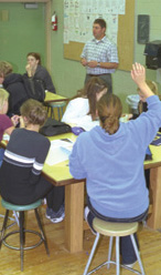 The class heads back to the woodworking lab. While waiting for the bell to