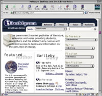 Named for Bartleby the Scrivener, the title character in the book by Herman Melville, Bartleby.com is a collection of reference and literary works unequalled on the web. On this site you can find the full text of major encyclopedias, books of quotation, dictionaries, thesauruses, writing guides and major works of literature (including Shakespeare’s 37 plays and 154 sonnets) as well as some less obvious choices like Gray’s Anatomy and Emily Post’s Etiquette. In the case of Shakespeare and other major writers, the text is accompanied by complementary biograph-ical information from various sources. It’s the ability to search the full text of these resources that makes this site a remarkable tool. For example, I found 357 references to the word "blood" in Shakespeare. Not a bad start for a student writing about Shakespeare’s use of blood as a metaphor for … well, whatever. Teachers and students looking for major Canadian writers will be disappointed. The site is based in the U.S. and its slant towards the American canon is obvious. But notwithstanding that disappointment, anyone will be impressed by what the site does offer. But be warned: a quick visit to scan what is available can often lead to hours of self-indulgent, yet fascinating, roaming throughout the site.