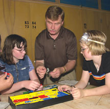By Leanne Miller Ray Denny has taught Grades 7 and 8 Science and Technology at Stewarttown Middle School in the Halton District for the past 11 years. "This is an outstanding school," he says. "The staff and the students are great and our parents are involved and tremendously supportive." While this interview took place, on a scorching last day of school, long after the students had gone, a parent came into the classroom, shook his hand and thanked him for doing such a great job with his daughter. When asked what he did that was so special, Denny shrugged, "Nothing much, I just did my job and pushed her along all year to be the best she could be. What I do is like teaching Grade 1: the kids come in not knowing how to read and they leave knowing. With me, they come in not knowing anything about safety and technology and design and when they leave, they’ve brought scientific theory to life and they can use AutoCAD and hand and power tools. They love it and so do I." Ray Denny has taught Core, Language Arts, Science and Technology in elementary and middle schools in the rural parts of the Halton District School Board since 1973. This year, he’s ready for his newest challenge: teaching Grade 7 History and Geography for the first time in 15 years. "Variety is a great thing; it’s what keeps me interested. Of course, it’s really about the kids. When they have fun learning, I have fun teaching." Denny is one of this year’s Teachers of the Year, as chosen by the Toronto Sun. More than 1,200 outstanding educators were nominated by colleagues, administrators, parents and students, and a panel chose 10 winners. E - M A I L S T R E N G T H E N S C O L L E G I A L I T Y "There’s a myth that we old Tech teachers are dinosaurs," Denny comments wryly as he searches for a document in his inbox. It’s certainly not true in Denny’s case. He checks his e-mail several times a day, as memos to staff are e-mailed, saving both paper and time. And he and the other Tech teachers in his board chat regularly, sharing ideas, lesson plans and tips. "This technology has made me a better teacher and it really has improved collegiality in our board." Two years ago, Denny and a colleague started providing in-service for other Science and Technology teachers who didn’t have any technology background but who wanted to excel in delivering the new curriculum. They developed a 10-hour in-service program to train teachers how to use the old shop tools and machines that Halton has kept in some of its schools. Denny says, "There are no more welding torches, but the hand tools and some smaller floor machines such as sanders, scroll saws and drill presses are still around. We teach them about the equipment and about safety and how to safely set up a classroom. And most importantly, we teach them how to encourage their students to use their hands and these tools to apply the theory they are learning. We teach them how to bring their students’ learning to life." "It’s ironic," he continues, "when I started teaching, all the shop teachers were men and all the students were male. Girls slowly started to take shop, but they were still only taught by men. That was the first step in eliminating the gender barrier. Today, 50 per cent of the teachers taking our in-service are women. The barrier is gone and girls now have both male and female role models teaching them how to apply the particle theory and how to use technology. I like that." At least 65 Halton teachers have participated in this in-service program over the last two years. O N T A R I O ’ S N E W C U R R I C U L U M Denny praises the new curriculum: "It’s good to get back to structure, content and skills. It challenges the kids and I find it interesting too." One of the biggest challenges he struggles with is relating the Science and Technology curriculum to the world outside the school. "I know that kids learn best when the material they’re taught is relevant to their own lives," he says. "I like this about the curriculum and I’ll work more on this aspect of my teaching and lesson planning this year." Denny works in a supportive and flexible school environment. He asserts that this is what makes him and his colleagues outstanding. He and a Science teacher work together to deliver Grade 7 and 8 Science and Technology courses. They each deliver certain strands and the students benefit from learning both in a proper science lab and in a technology classroom equipped with tools and computers. Denny explains, "I believe in specialization and purposeful integration. Kids benefit from expertise and enthusiasm and this comes when teachers have solid knowledge of their subject matter because then they enjoy what they are teaching. Our principal is wonderfully supportive as well. We are flexible with our timetabling, we work closely together, our classrooms are side by side and the kids are the real winners." For example, Denny uses a key fob activity to encourage all of his students to excel. He says all the students can make a perfect fob. "Some kids will take longer than others to buff out all the marks, but I encourage them all to be perfect, and with varying degrees of assistance, they all can be. Of course, a level four is tough to achieve, but it happens when kids demonstrate extra creativity by making inside curves (try making the letter ‘R’). Everyone can be successful and everyone sees the particle theory come to life. That’s what’s truly exciting." T H E L E S S O N P L A N Background and Context This is a culminating activity from the Heat unit in the Energy and Control strand in the Grade 7 Science and Technology course. It takes six to eight weeks to teach the basic concepts and skills of this unit, which focuses on the causes and effects of heat and the principles of particle theory. The culminating activity takes four classes to complete; classes run 50 minutes each, four days a week. This is a variation on the old key fob lesson adap